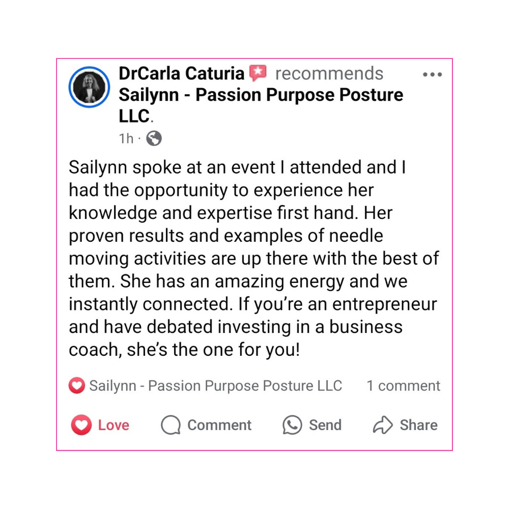 🎤 REASON #4: No fluff. Just frameworks. Everything Sailynn teaches is rooted in her Legacy Business System—designed to create profitable structure, systems, support, and streamlining. Every minute counts.