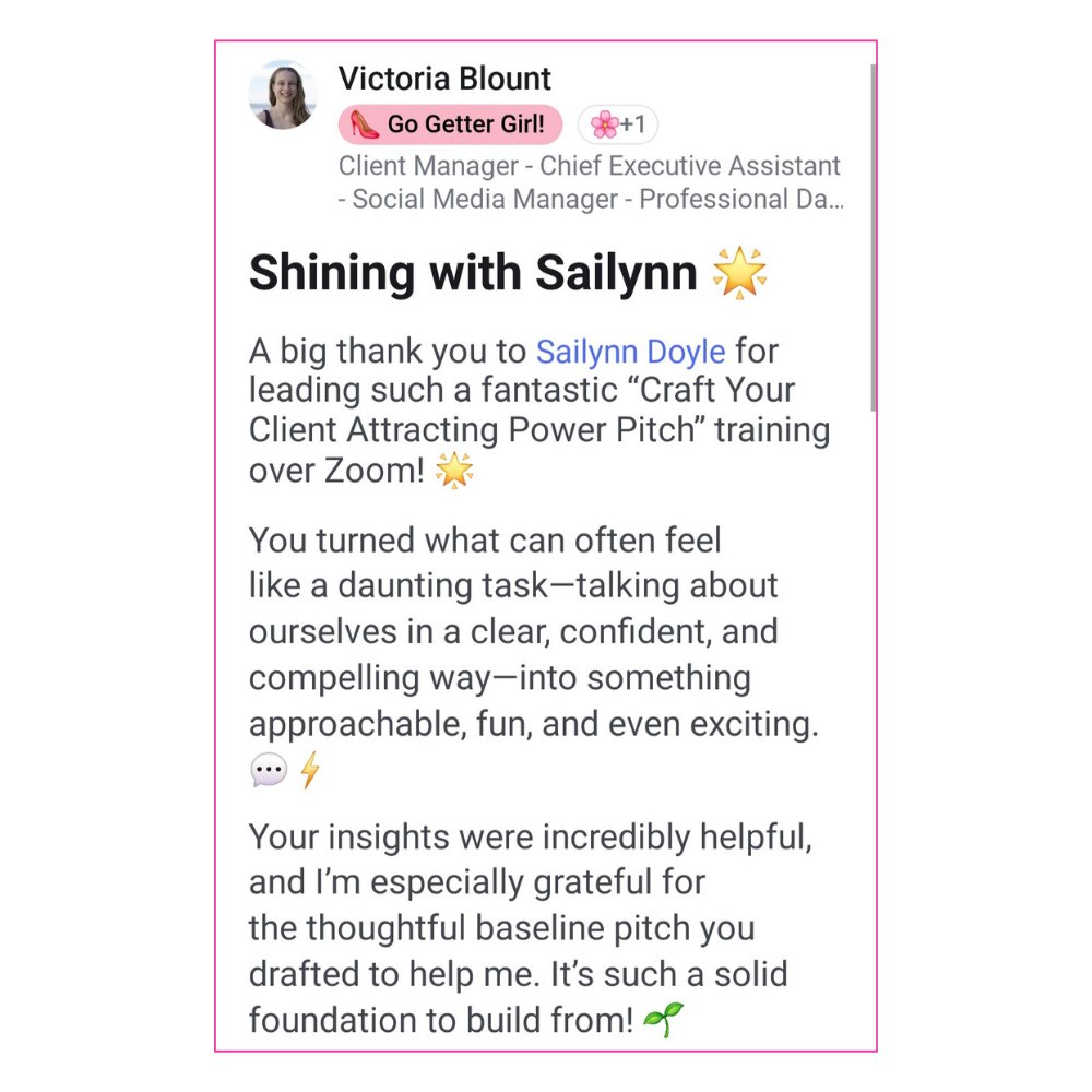 Most entrepreneurs can’t explain what they do in a way that sparks a “tell me more.” In this interactive talk, Sailynn will walk attendees through her signature framework to create a magnetic, memorable pitch that lands clients on the spot.